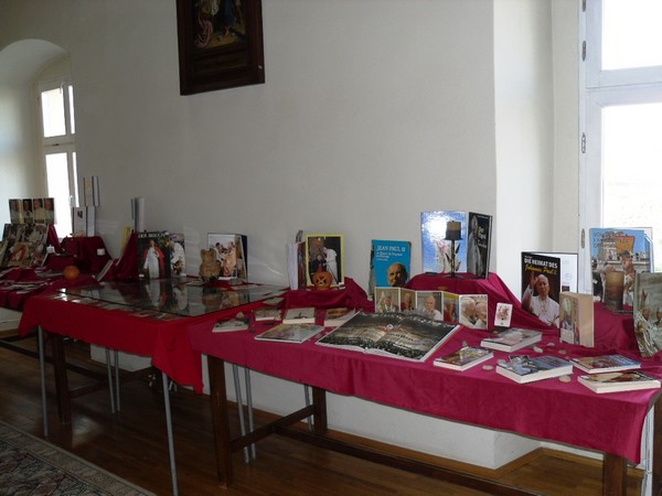 A gyulafehárvári filmestet szerény, de hangulatos állófogadás követte, amelyen az érdeklődőknek alkalma nyílt megtekinteni az alkalomra összeállított képkiállítást, amely a szentatya életét, szép és emberközeli momentumokat mutat be. Tanárok, diákok, szerzetesek és a nagyböjti lelkigyakorlatot moderáló Jelenits István SchP is vallottak személyes és a maguk nemében egyedülálló élményeikről, benyomásaikról a szentatyával kapcsolatban. Láthatóak voltak dr. Jakubinyi György érsek ad limina látogatásain készült felvételek is, ezeken jól látszik, mennyire szenvedett a pápa az utolsó években. Könyvkiállításnak is helyet adott a nagyterem előtti folyosó, itt a Boldog II. János Pál által, illetve róla írt dokumentumokat, albumokat, emléktárgyakat csodálhatták meg az érdeklődők. Mindezek után gasztronómia kitekintő következett, szerény agapé: II. János Pál kedvence ugyanis a krémestészta volt, amit Lengyelországban cremovski papienski néven ismernek, a név ihletője természetesen a pápa. Ezt próbálták szorgos kezek az asztalra varázsolni, és hála Istennek fogyasztása azt sejtette, hogy igencsak finomra sikeredett.