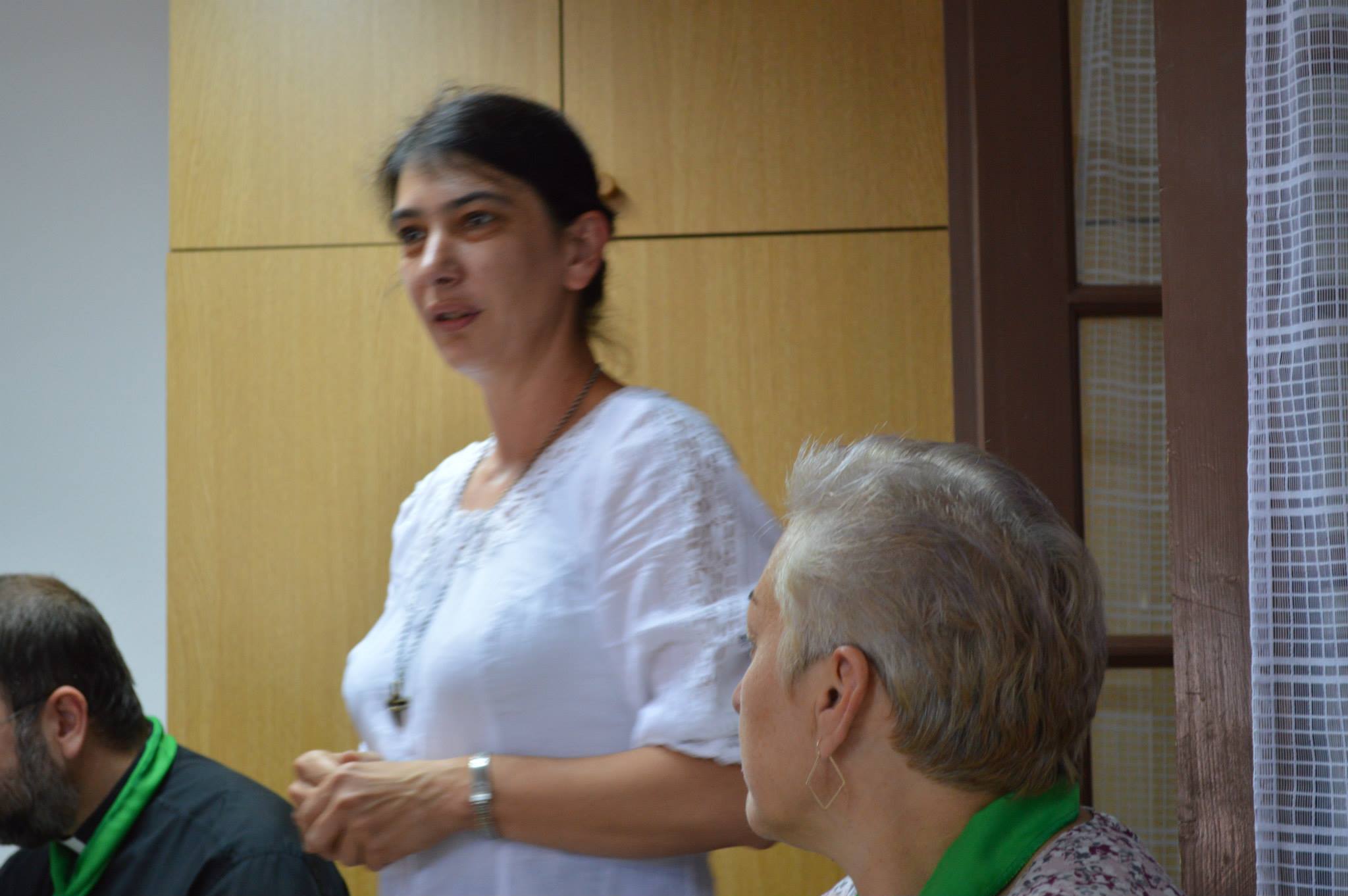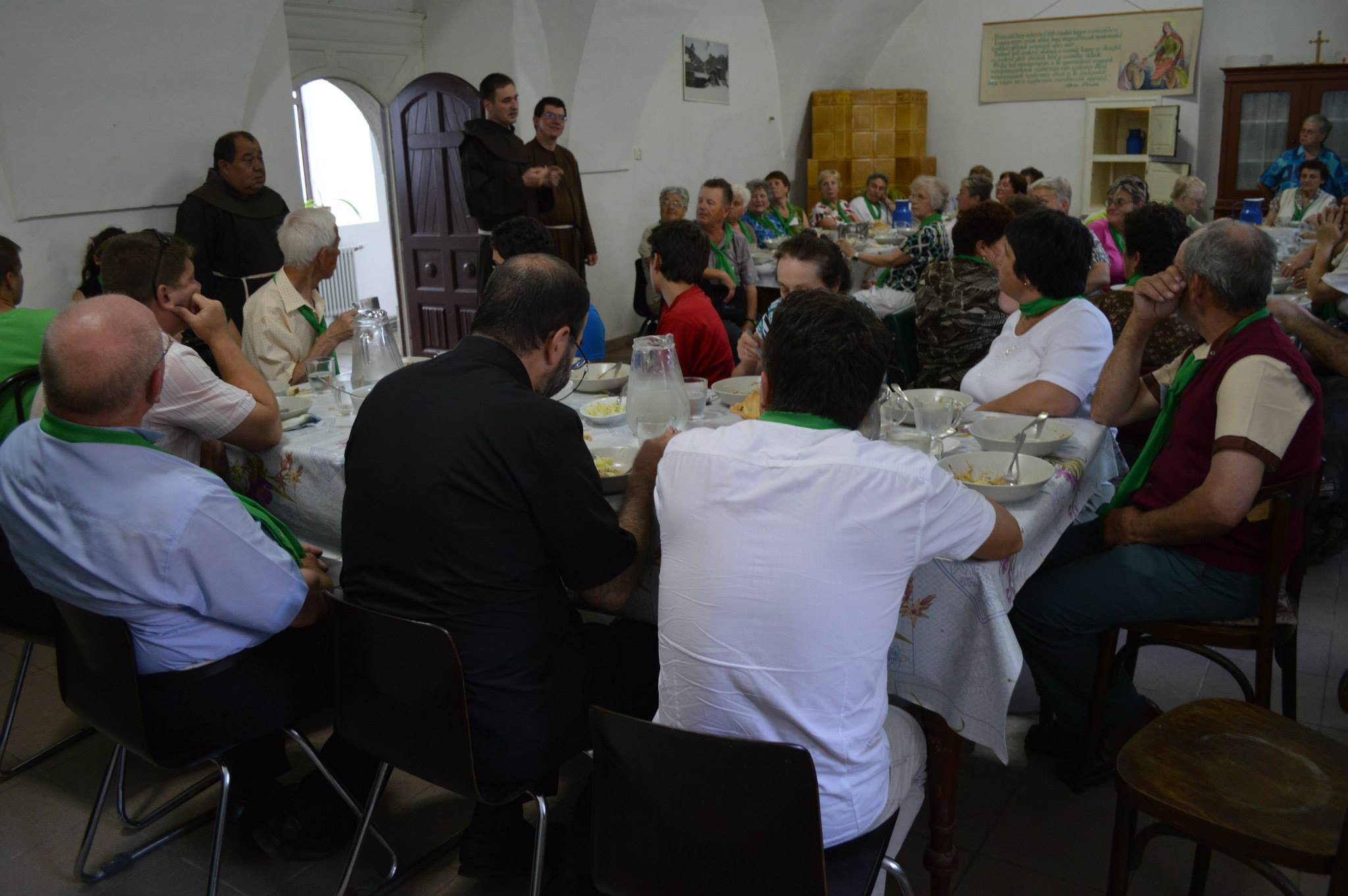 Az ebéd ezúttal is a segítő nővérek Szent Margit házában volt, amely ugyan Áron püspök halála után, de az ő óhajának köszönhetően épült fel. Az ebéd végén Kovács Gergely atya meglepetésként adta át a májusban viceposztulátorrá kinevezett és a zarándoklatokhoz első ízben csatlakozó Kasza László atyának a szentszéki képzést és sikeres vizsgát tanúsító oklevelet. Ezután Darvas Piroska nővér nyújtott bepillantást a szerzetesrend történetébe és személyes hivatásának alakulásába.