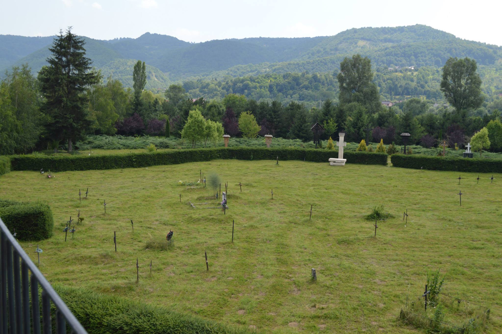 Délután a zarándokok felkeresték a "szegények temetőjét", azt a város peremén fekvő, Ukrajnától csak a Tisza által elválasztott területet, amely 1997-ig működött temetőként, azóta a börtönmúzeumhoz tartozó emlékhely. Itt temették el a város szegényeit és árváit, az elmegyógyintézet halottait, valamint a börtönben elhunyt rabokat. Itt nyugszik valahol, jeltelen sírban, a máramarosszigeti börtönben 1954. szeptember 14-én elhunyt Boga Alajos is, aki általános helynökként Áron püspök letartóztatása után egy ideig az egyházmegyét irányította. A görögkatolikus egyház által állított kereszt az ő emlékezetét is őrzi. A zarándokcsoport itt és a szabadtéri oltárnál is imádkozott az áldozatokért és Áron püspök boldoggá avatásáért. Az oltárba a III. Márton Áron zarándoklaton helyezték el a boldogemlékű püspökünk szülőfalujából származó földet tartalmazó urnát, míg a rákövetkező alkalommal a Boga Alajos szülőfalujából, Csíkkozmásról származó földet tartalmazót.