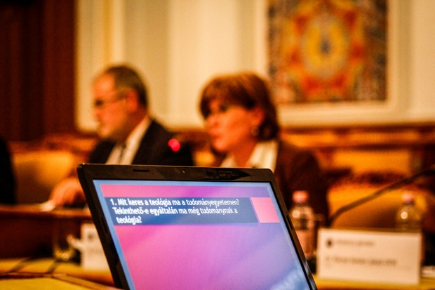 A pénteki nap kerekasztal-beszélgetése a köré a kérdés köré épült, hogy van-e helye a teológiának mint diszciplínának egy tudományegyetemen, habár annak formájában nem is, de a jelenlévők, illetve a kerekasztal-beszélgetés meghívottjai egyetértettek, hogy igen is, helye van a teológiának is a felsőoktatási intézményekben. A pénteki nap zárásaként a kar Márton Áron-termében Bogdán Zsolt színművész Ady-estjét hallgathatták meg a konferencia résztvevői.