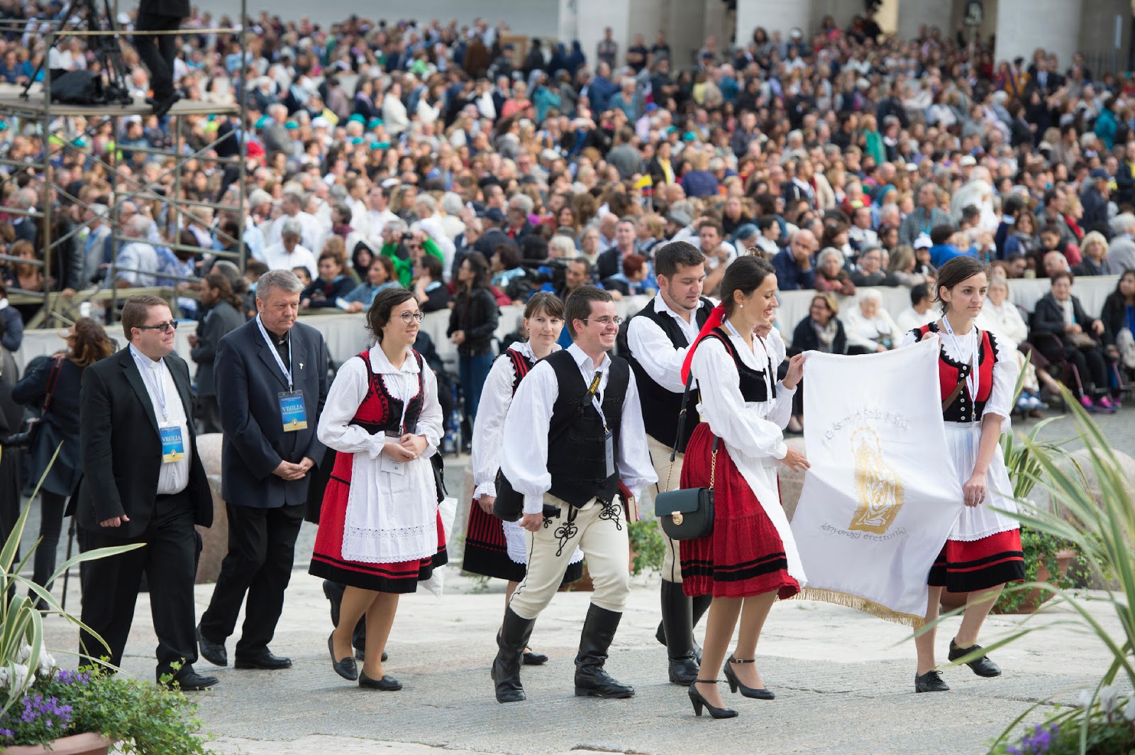 A Szentatya vezetésével elmondott Dicsőséges Szentolvasó és Loretói Litánia végén minden delegáció egy-egy képviselője a pápa elé járulhatott: Márton Szabolcs Csíksomlyó, Anasztázia nővér Máriapócs, Érszegi Márk Aurél pedig a római magyarok üzenetét adta át Ferenc pápának.