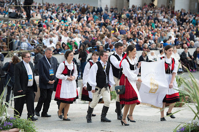 "Magyarországról három szépséges küldöttség érkezett: itt van a római magyarok közössége, mely a Magyarok Nagyasszonya szentképét hozta el, illetve a máriapócsi és a csíksomlyói kegyhelyek küldöttségei" – e szavakkal konferálták fel a Regnum Marianum delegációit (Csíksomlyót is tökéletes kiejtéssel sorolták).