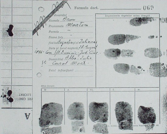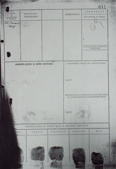 A börtönben készült személyi lapja és ujjlenyomata. 1949. június 22.