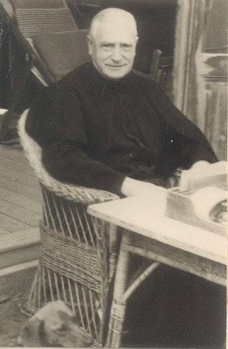 Ünnepi öltözetben a székesegyház felé, Huber József irodaigazgatóval